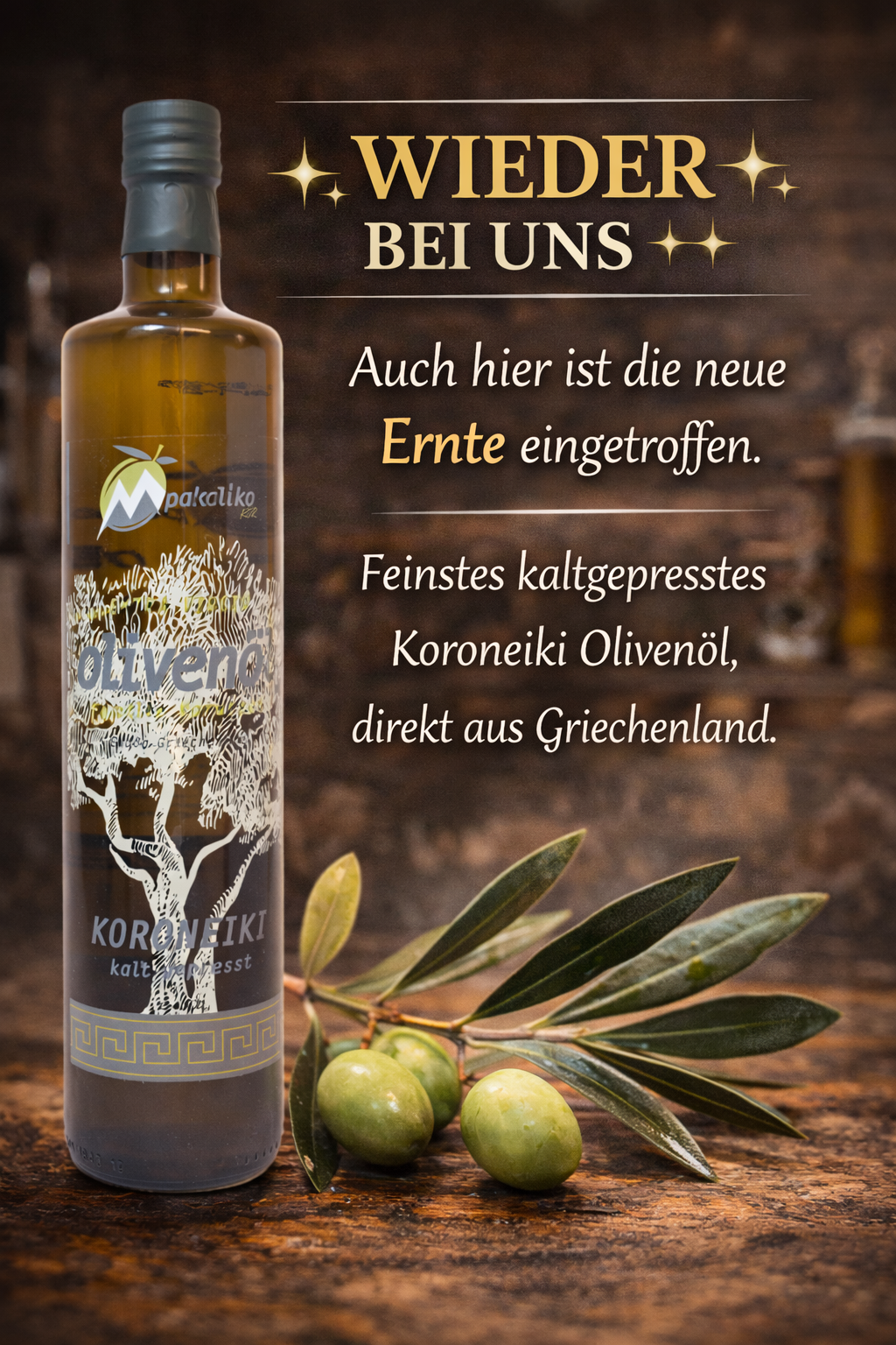 Ein wahres Juwel der mediterranen Natur! Hergestellt aus 100 % sortenreinen Koroneiki-Oliven – einer der ältesten und edelsten Olivensorten Griechenlands, bekannt für ihr intensives Aroma und ihren außergewöhnlich hohen Gehalt an Antioxidantien und gesunden Fettsäuren.
